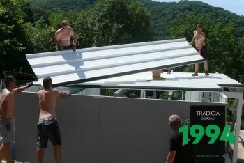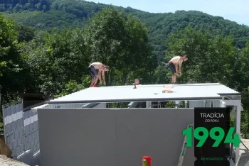 Sie kamen pünktlich wie vereinbart an. Am Morgen, kurz nach 8 Uhr, trafen zwei Autos mit Material und eine Gruppe von Monteuren in einer schönen, bergigen Umgebung der Slowakei ein.